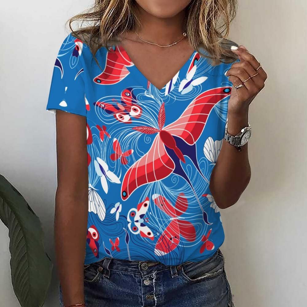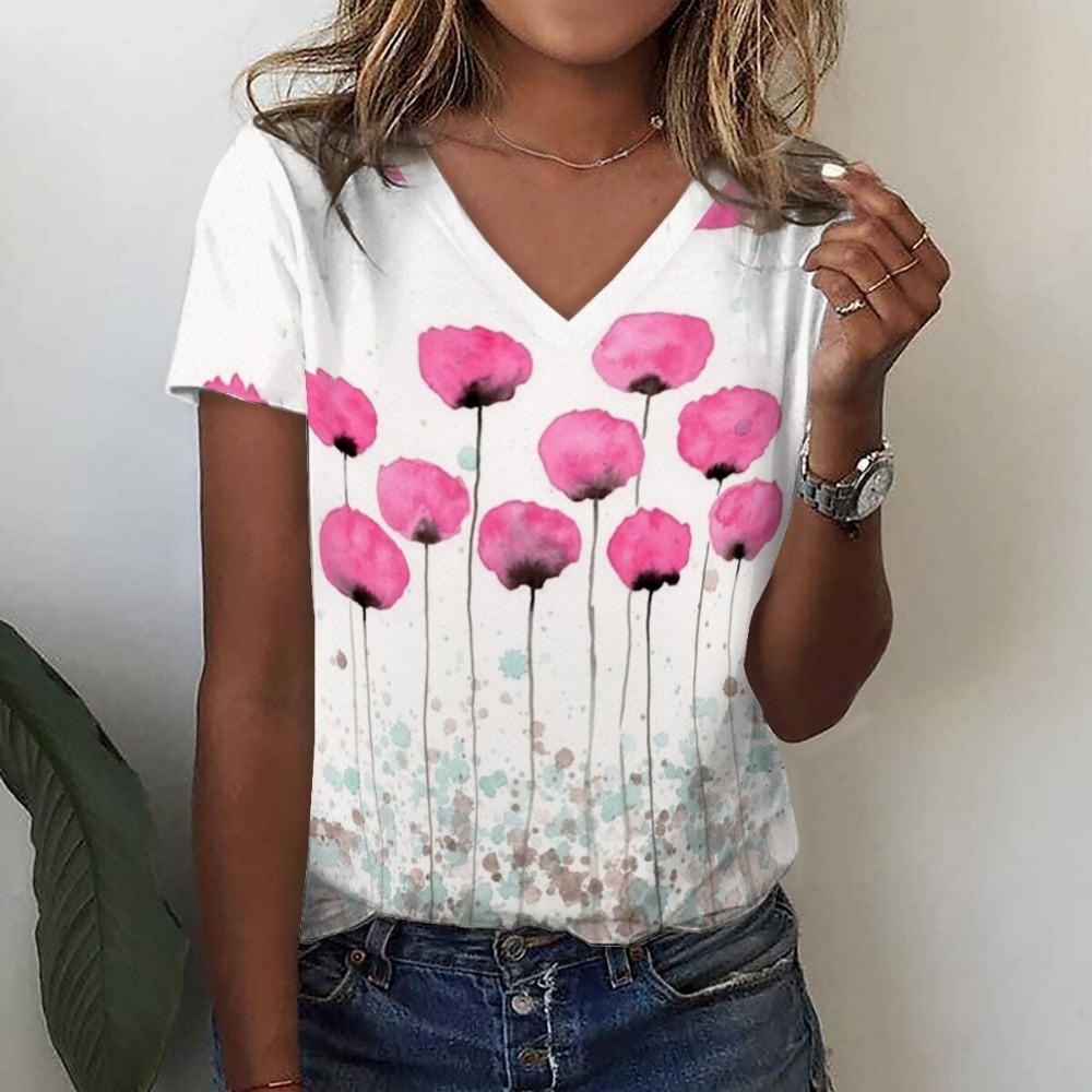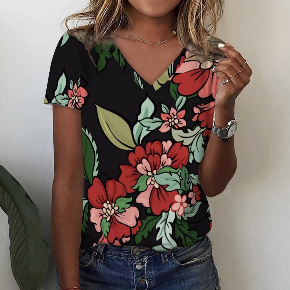 Футболка с 3D-принтом и цветочным принтом в виде тропических листьев, летние женские футболки с V-образным вырезом, топы Y2k, уличная одежда, футболки больших размеров в стиле Харадзюку, женская одежда