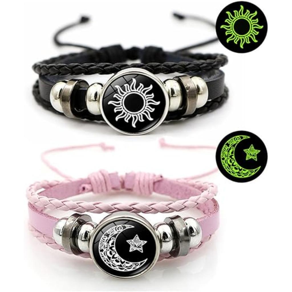 Светящиеся плетеные парные браслеты «Солнце и Луна» для отношений на расстоянии