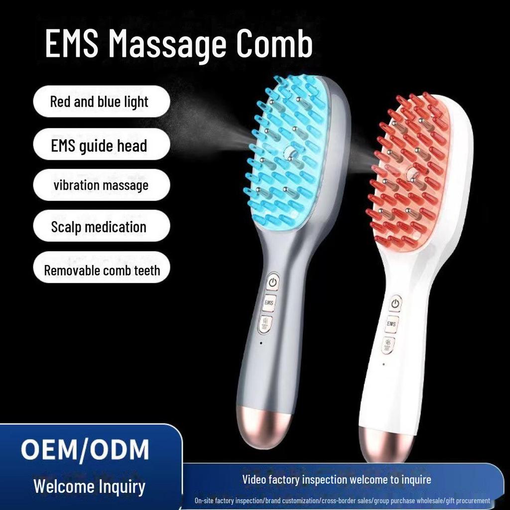 Электрическая массажная расческа для кожи головы с синей и красной светотерапией для роста и ухода за волосами