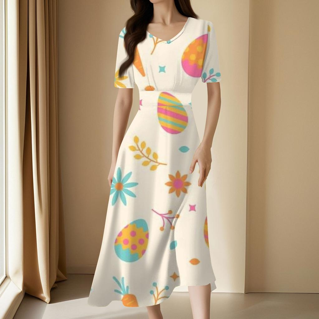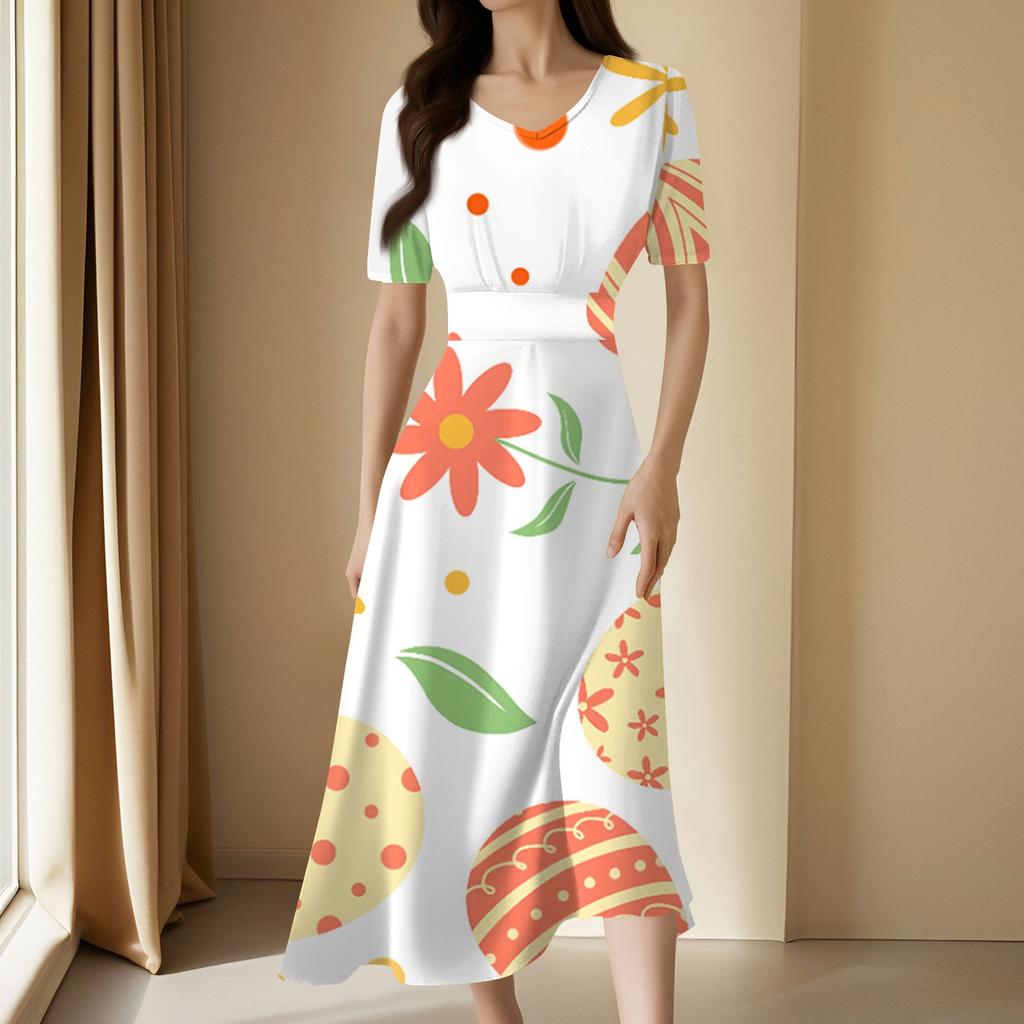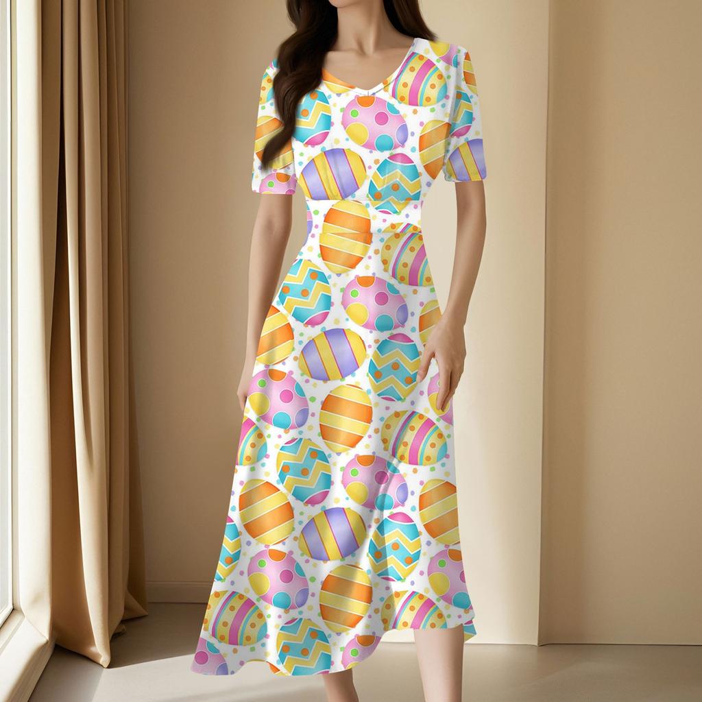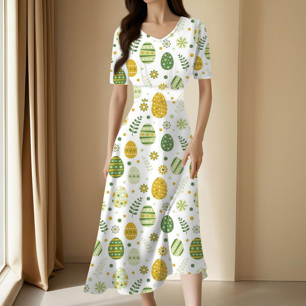 Женское повседневное модное длинное свободное платье с v-образным вырезом и коротким рукавом на талии