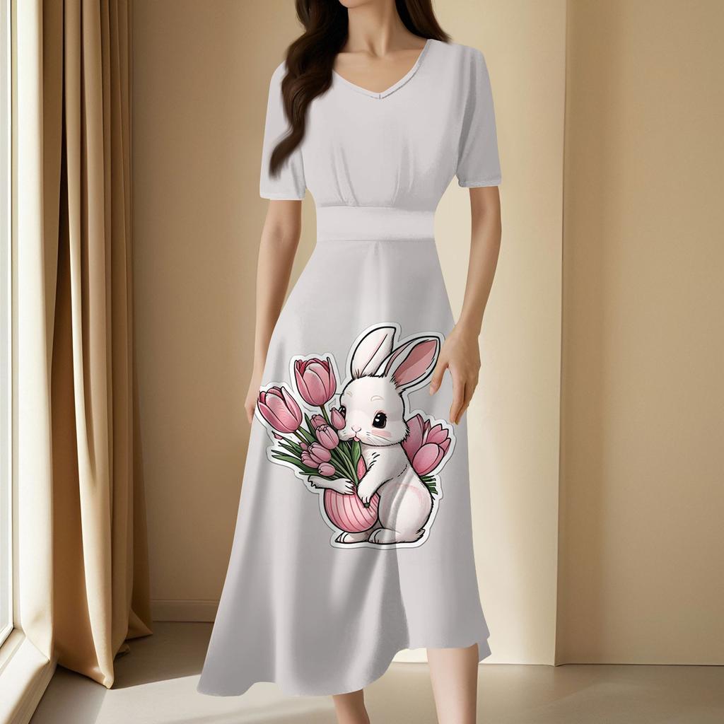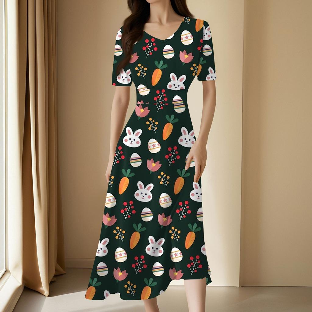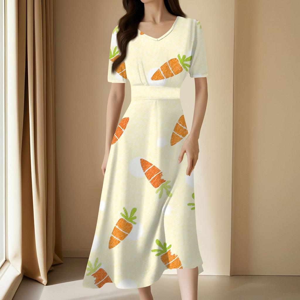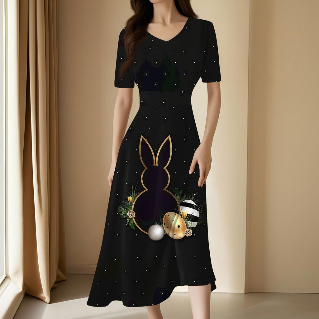 Женское повседневное модное длинное свободное платье с v-образным вырезом и коротким рукавом на талии