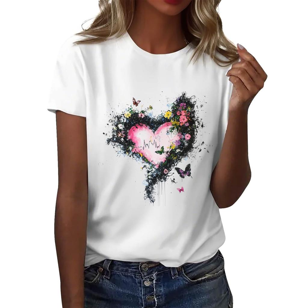 Женская повседневная футболка с круглым вырезом и короткими рукавами с принтом
