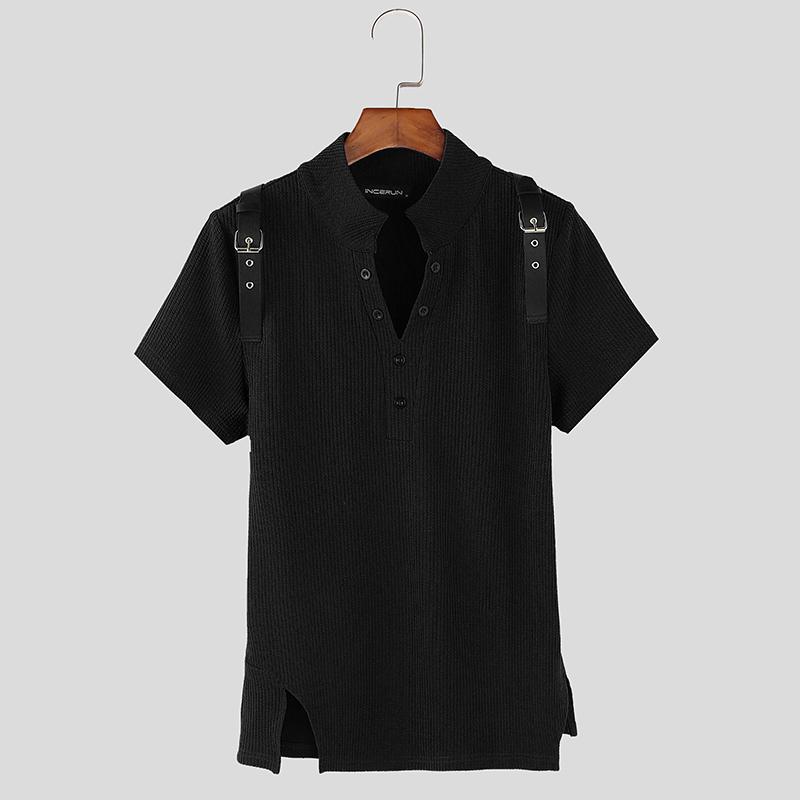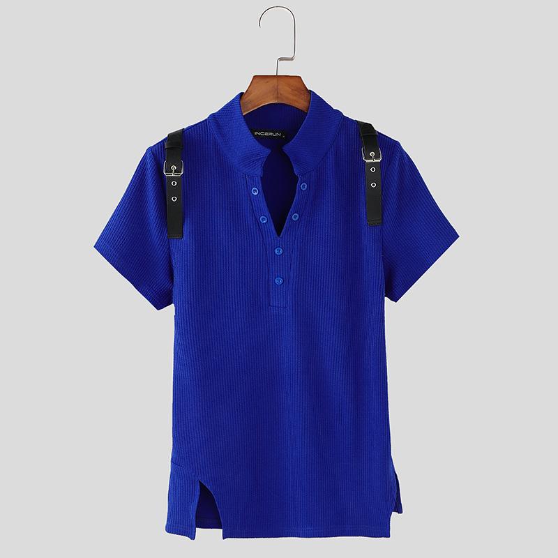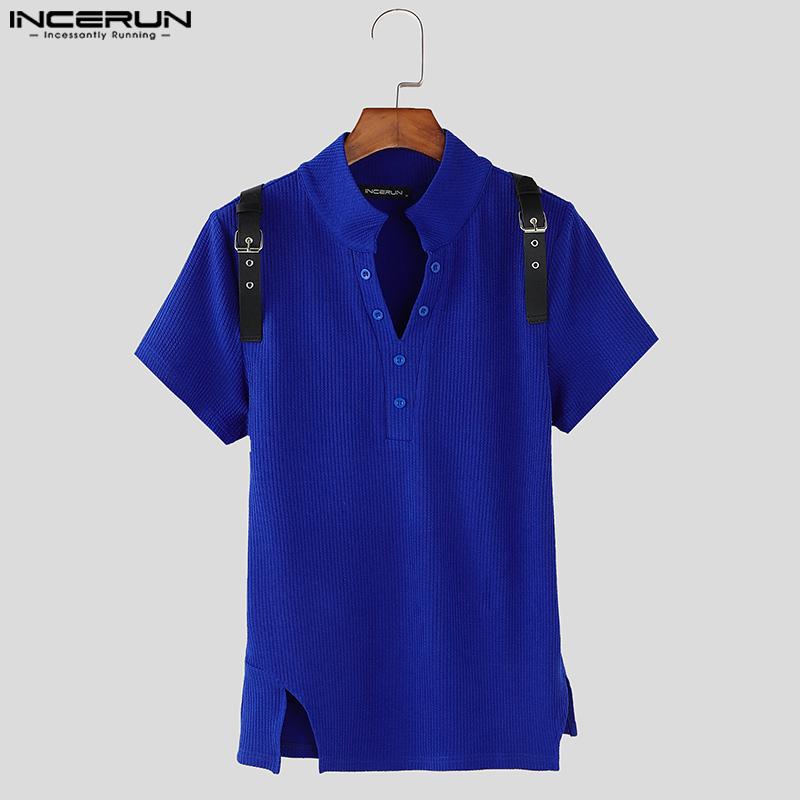 INCERUN Летние мужские футболки с V-образным вырезом и коротким рукавом в стиле пэчворк, тонкие топы