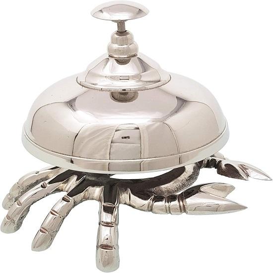 Этот настольный колокольчик, изготовленный с высокой точностью, отличается элегантным и неподвластным времени дизайном.. Его полированная отделка и замысловатые детали делают его выдающимся предметом для любого стола, стола или прилавка.