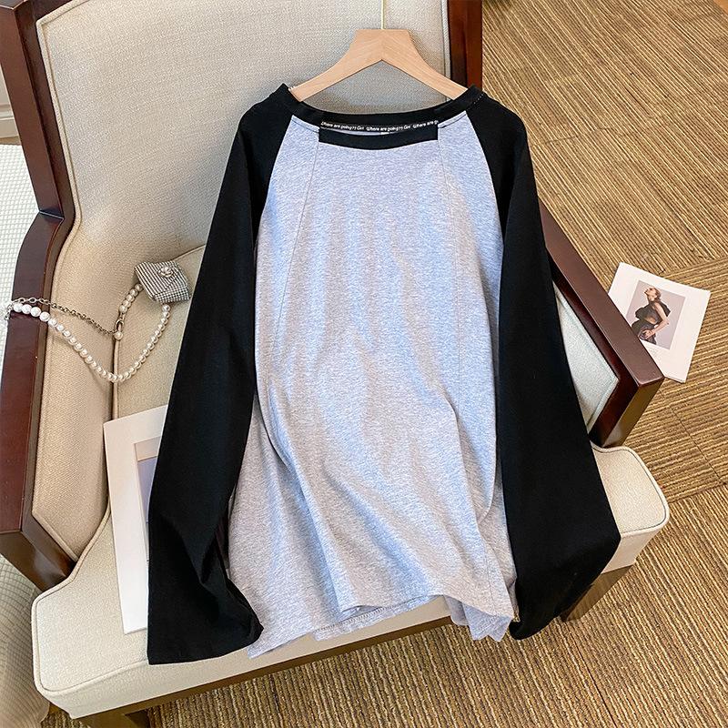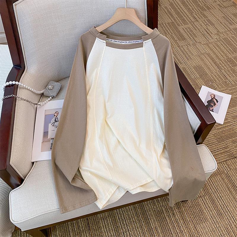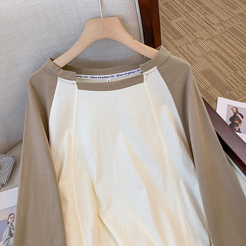 Женская универсальная свободная тонкая футболка с цветными блоками и повседневным дизайном Sense Recessed Lazy с длинными рукавами