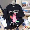 Летняя женская футболка свободного покроя с круглым вырезом и коротким рукавом с принтом кролика черного цвета