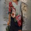 GMXIA Летний принт свободный бамбуковое волокно пенька цветочный короткий рукав женский винтажный литературный круглый вырез рукав пять четвертей