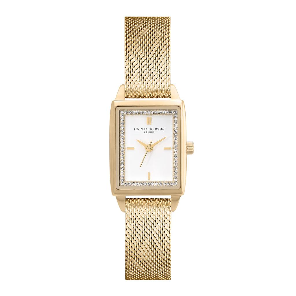 Авторизованный дилер Olivia Burton Watch ob24000016 Townhouse 21 мм Прямоугольные часы из белого золота с сеткой [OLIVIA BURTON] Женские и