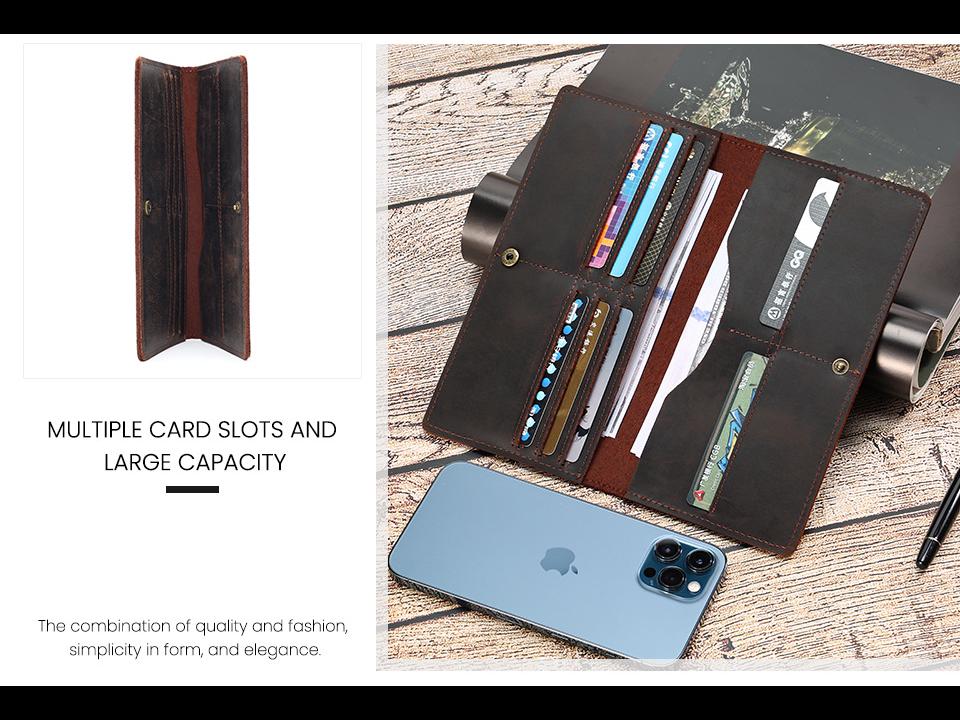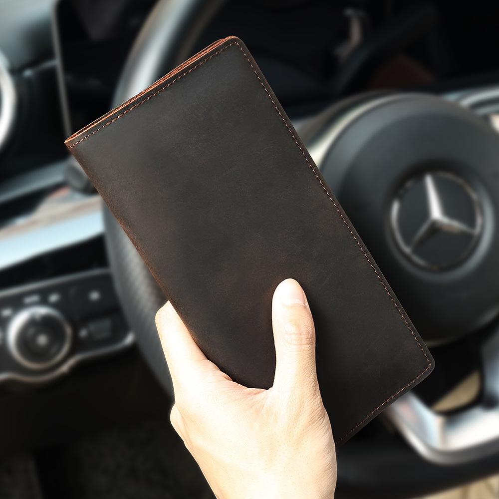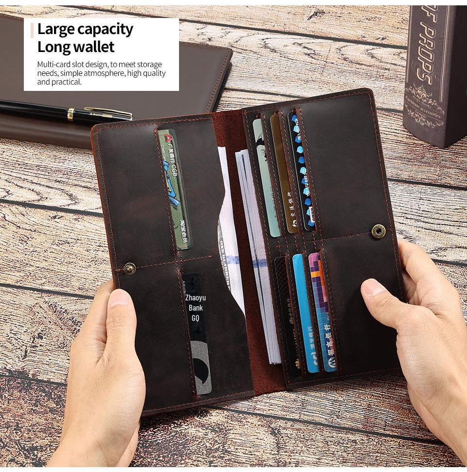 Мужской ретро-кошелек из коровьей кожи с несколькими отделениями для карт и клатчем.
