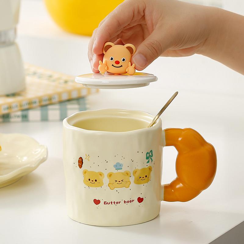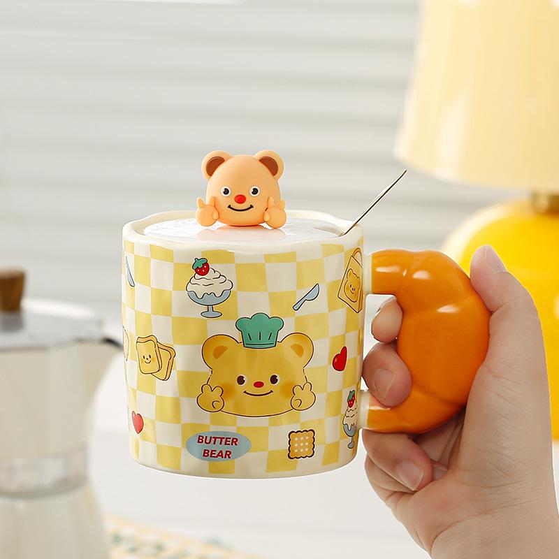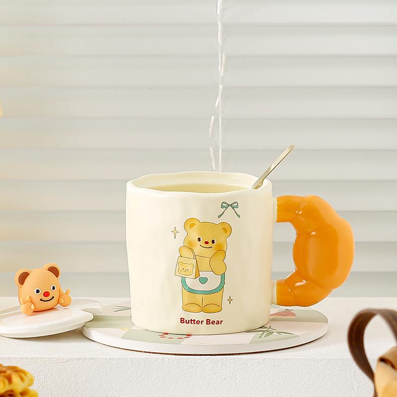 Милый медведь пояс керамическая чашка набор простая офисная кружка девушка пара чашка мультяшная личность чашка для воды
