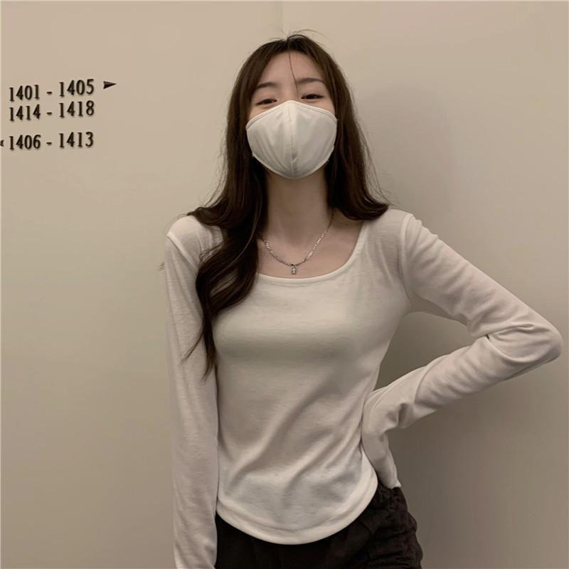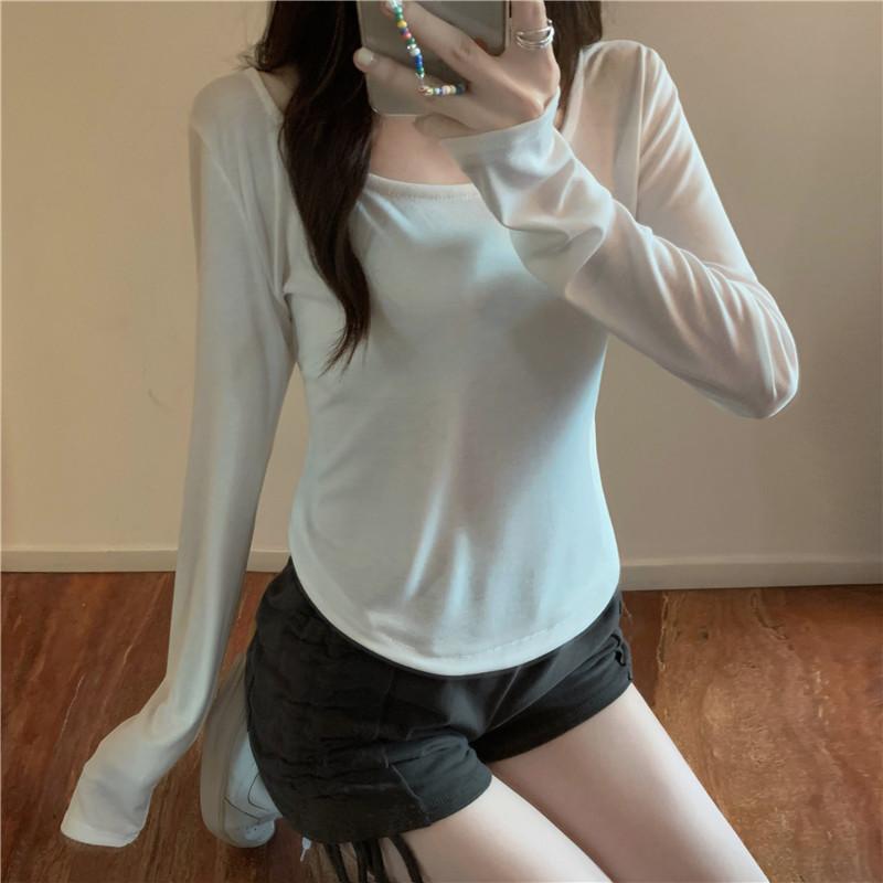 Женская весна-лето однотонная рубашка с длинным рукавом U-образным вырезом узкие блузки пуловер асимметричный короткий топ M-XXL