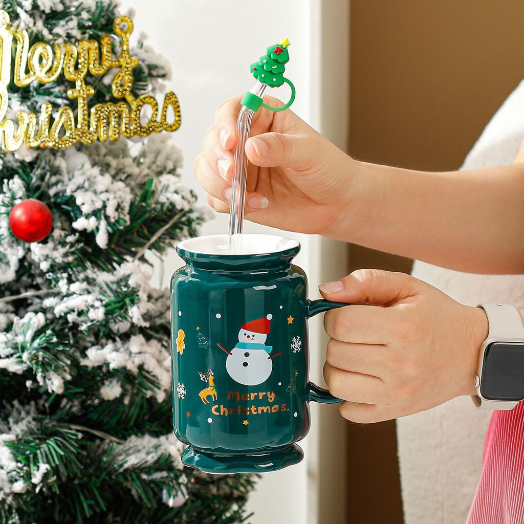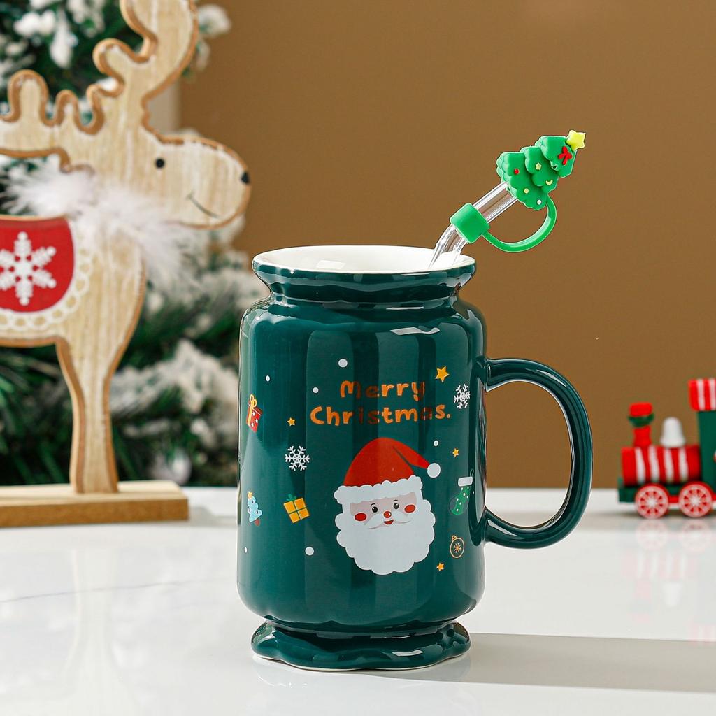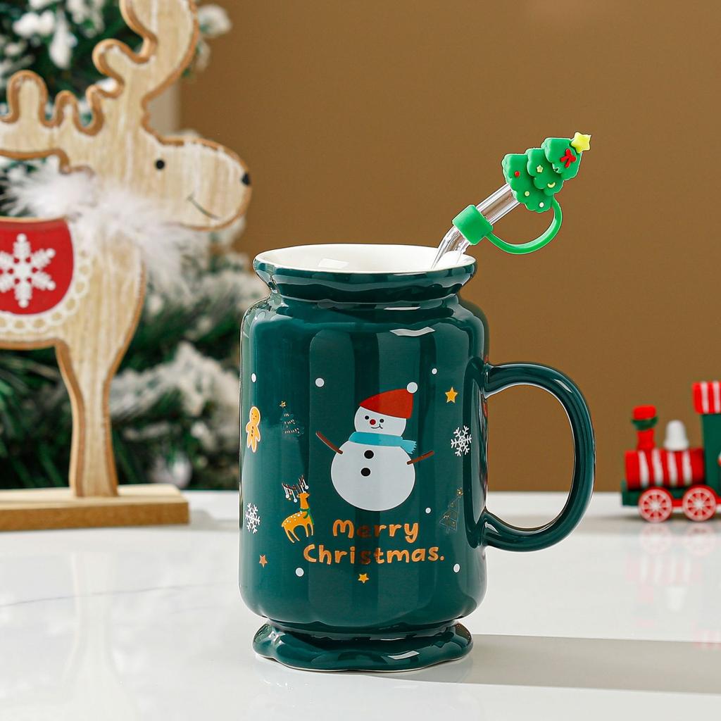 Рождественский подарок, соломенная кружка, мультяшная кружка с ручкой, большая емкость, простой набор, керамическая кружка, термостойкая кружка для воды