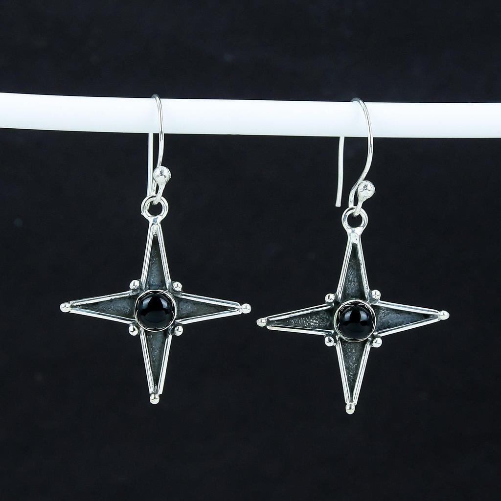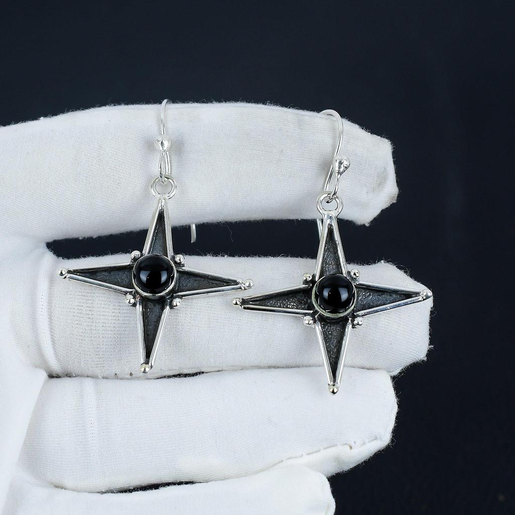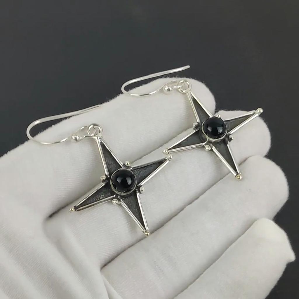 Серьги в форме звезды из натурального черного оникса, серьги из стерлингового серебра 925 пробы, серьги-подвески из серебра ручной работы в стиле бохо, подарок из ваты