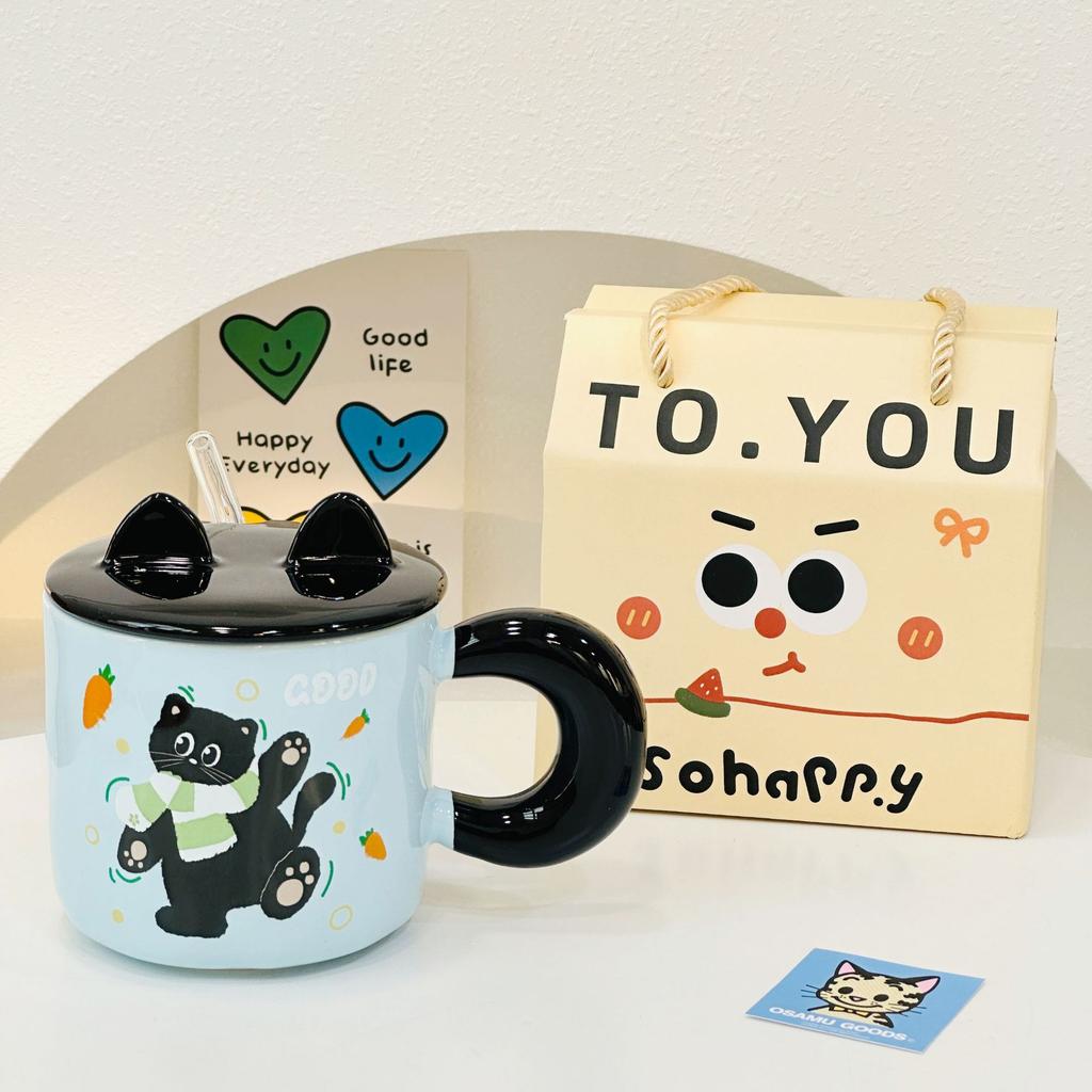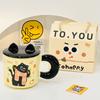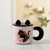 Рельефный котенок с крышкой, милый, высокий, девочка, керамический набор чашек, соломенная чашка, мультяшная кружка, открывающаяся в подарок