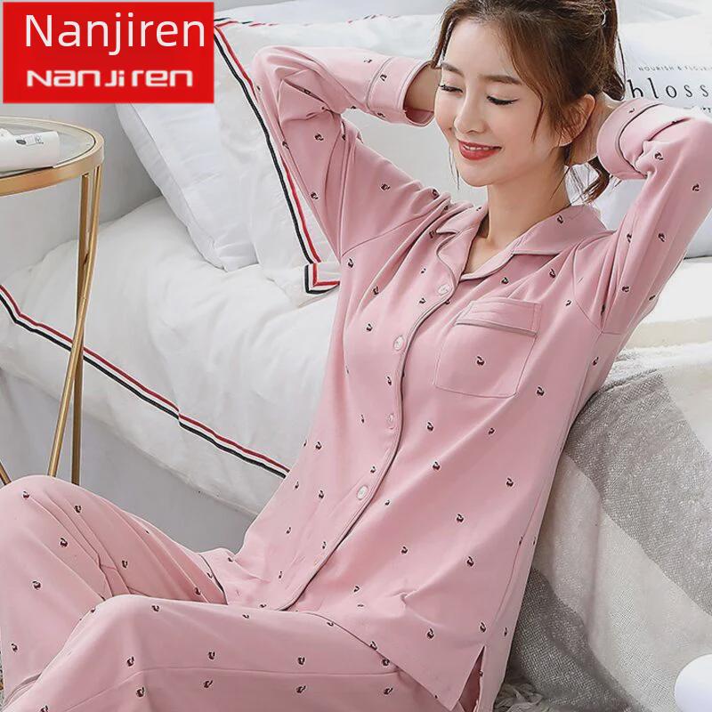 Эти женские пижамы больших размеров с длинными рукавами обеспечивают исключительный комфорт и универсальность в течение всего года.. Изготовленные из 100% хлопка, они идеально подходят для весны, осени, лета, зимы и даже для беременных, обеспечивая воздухопроницаемость и мягкость в любое время года.. Длинные рукава обеспечивают дополнительное тепло, делая эту пижаму уютным и стильным выбором для спокойного сна.