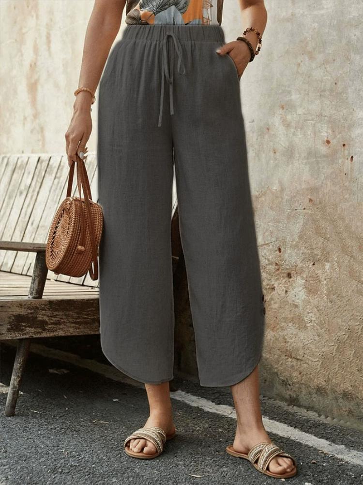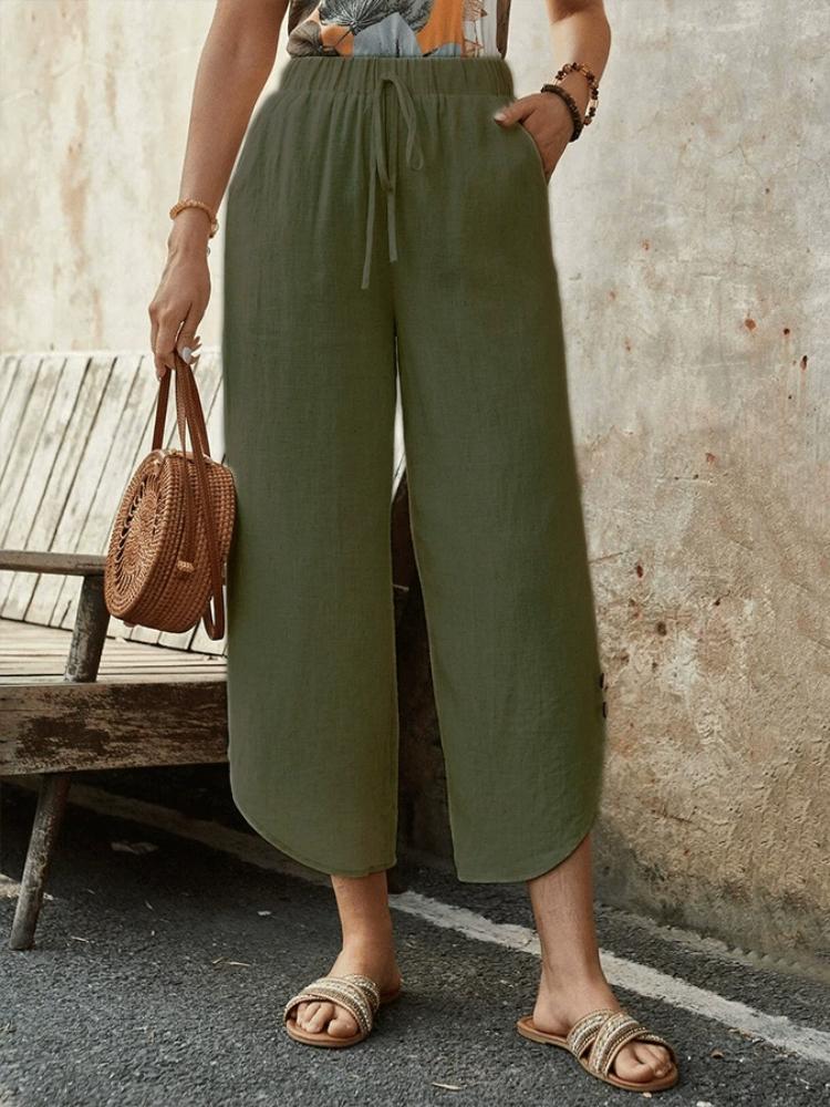 2025 Новые свободные повседневные брюки из хлопка и пеньки с завязками на шнурке и карманами для женщин
