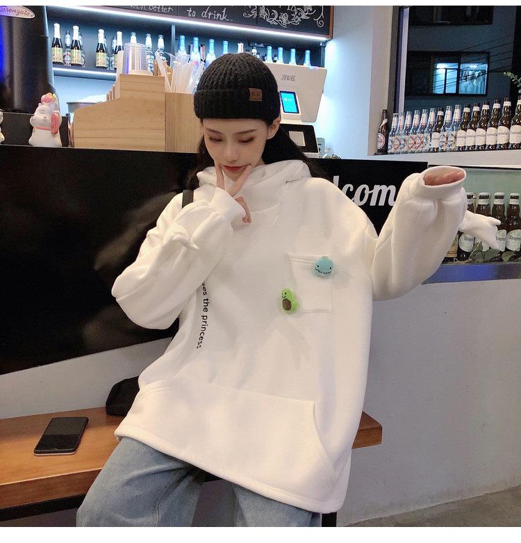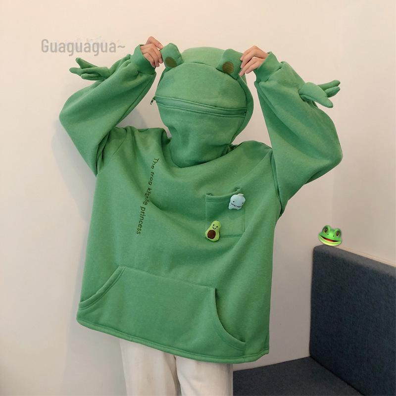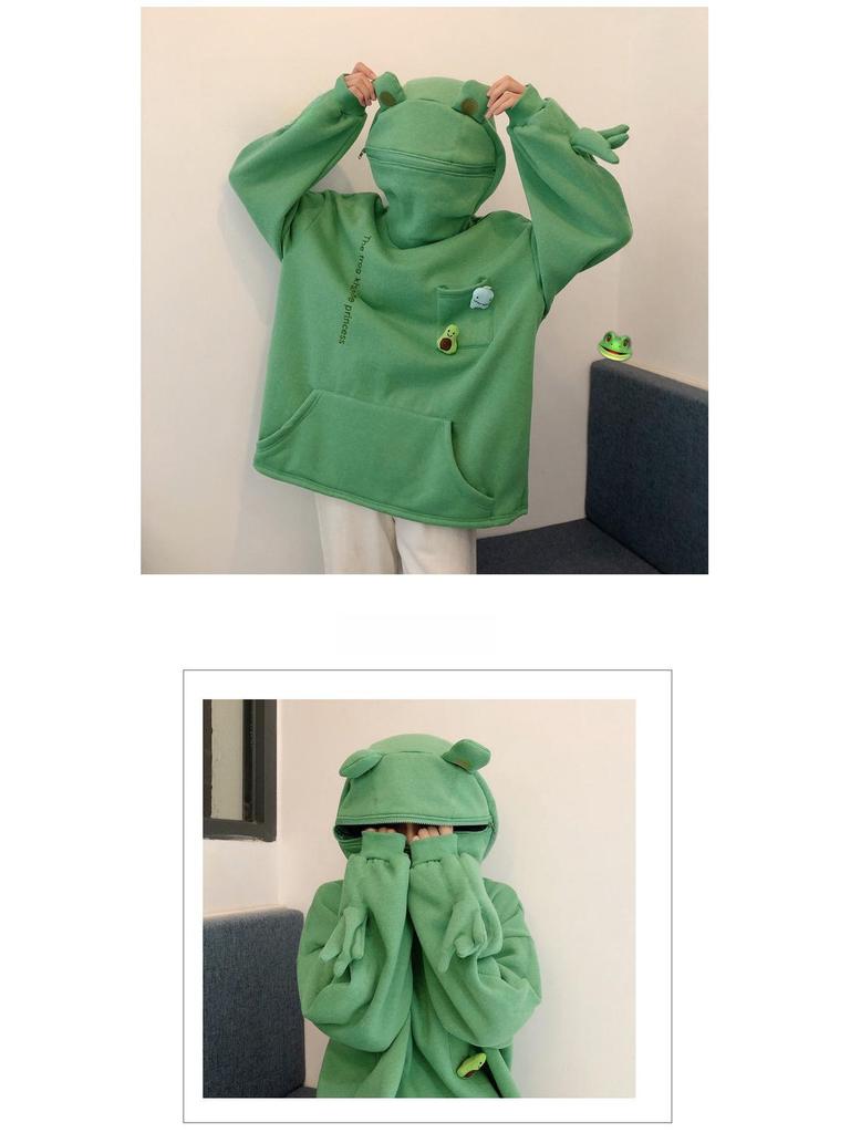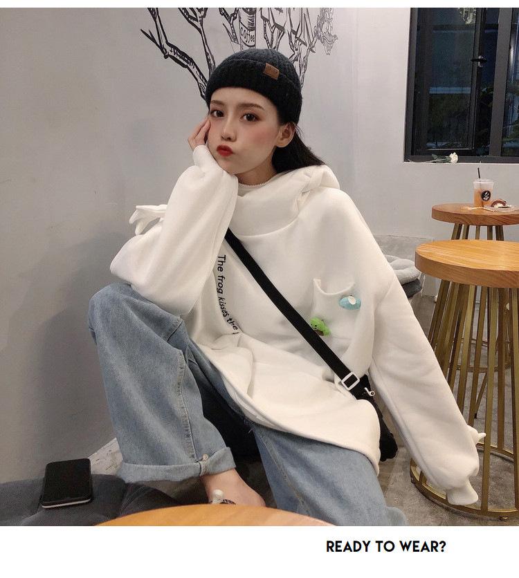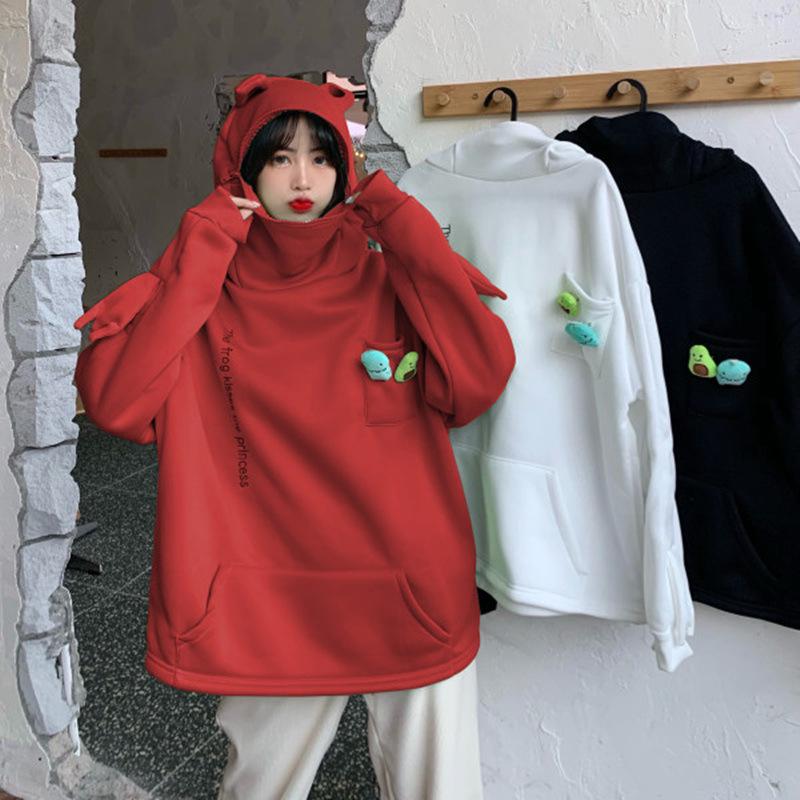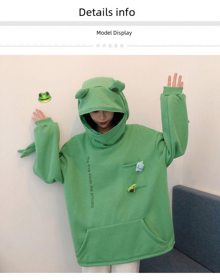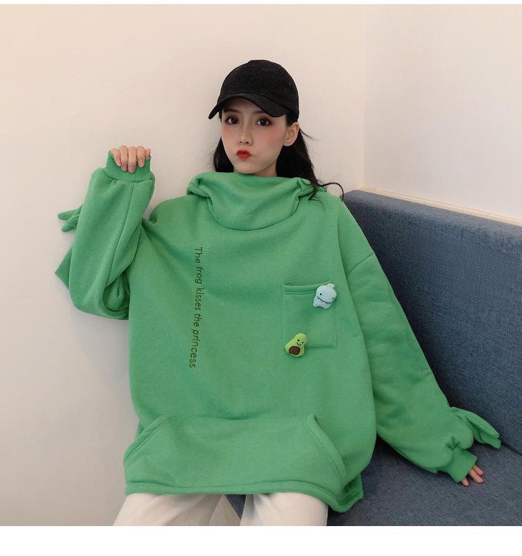 Женский пуловер с лягушкой на бархатной подкладке в корейском стиле: Свободный джемпер для подруг – тренд осени/зимы