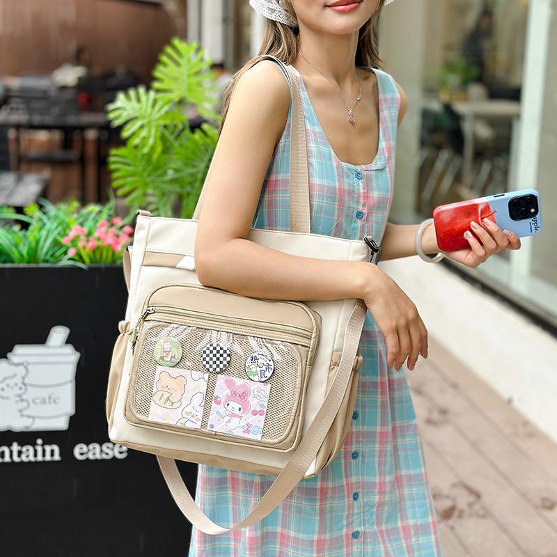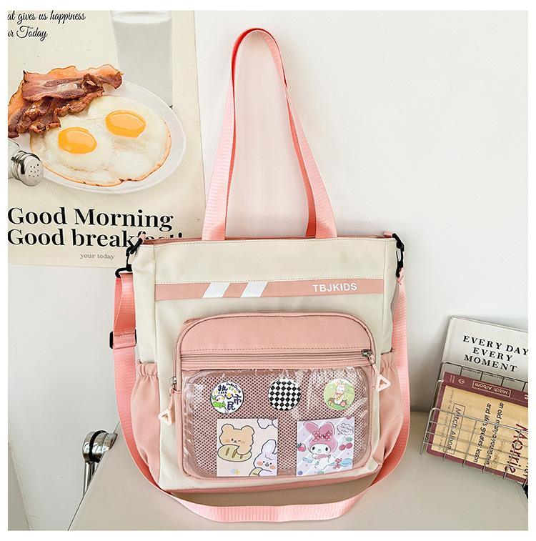 Сумка-мессенджер, уроки макияжа для учащихся средних школ и колледжей, контрастные цвета, холщовая сумка, стиль колледжа, свежая и милая холщовая сумка