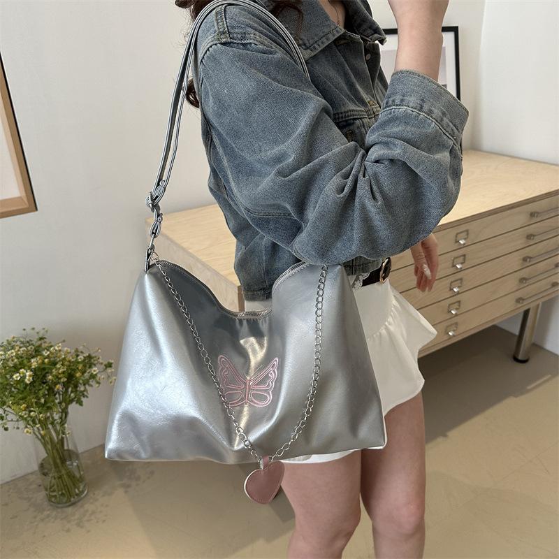 Большая вместительная сумка-тоут, модная сумка через плечо, текстурированная сумка-цепочка подмышкой, универсальная сумка-мессенджер