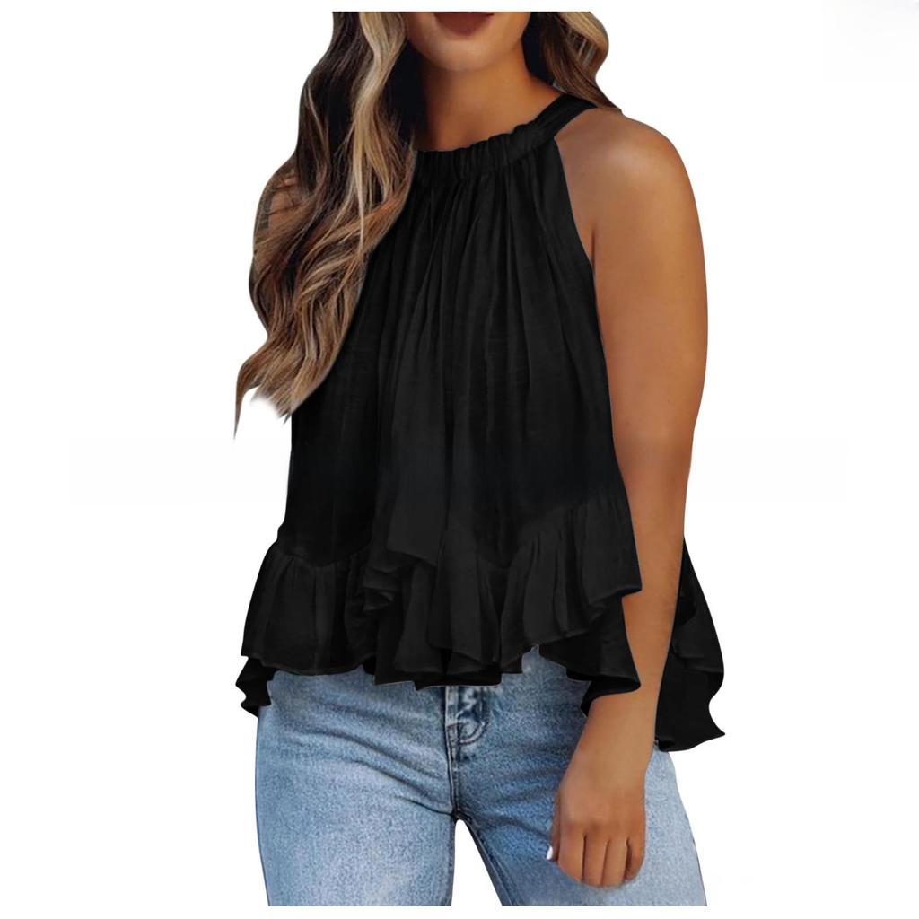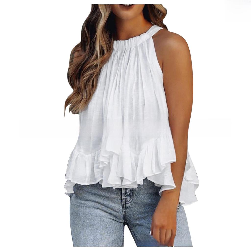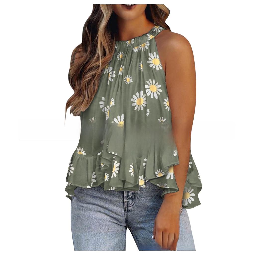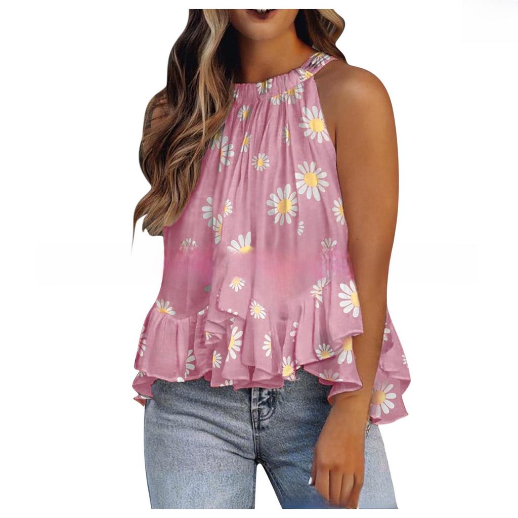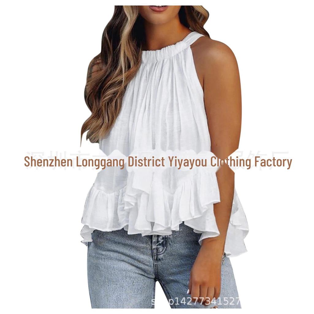 Европейский и американский летний принтованный жилет с халтер-воротом и регулируемой шнуровкой 2023 г.
