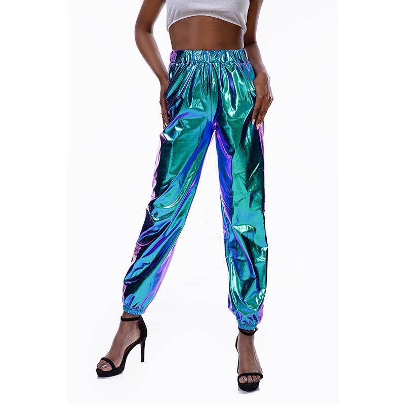 ★Уличный стиль — женские спортивные брюки, вдохновленные уличной модой, с дизайном из блестящей лакированной кожи, с высокой талией и резинкой, голографическим цветом, свободным кроем, широкими штанинами, длиной до щиколотки, с карманами, в уличном стиле.. Он подчеркнет ваши стройные и длинные ноги, привлечет внимание окружающих.