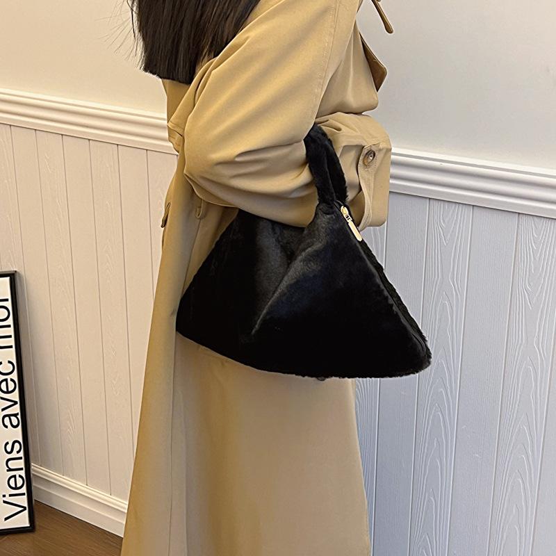 Женские сумки, плюшевые сумки, плюшевые сумки, нишевые сумки через плечо в иностранном стиле, модные и универсальные сумки подмышками