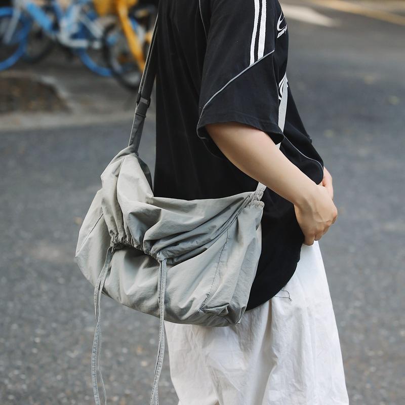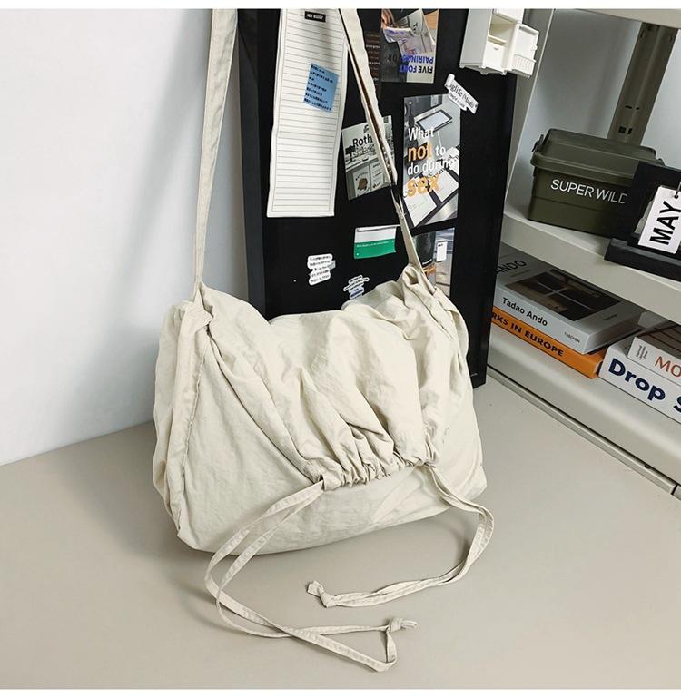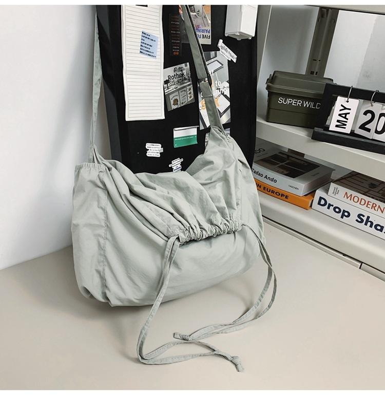 Большая вместительная сумка из нейлонового холста с завязками на шнурке, женская модная легкая сумка-ведро, повседневная универсальная сумка-мессенджер через плечо
