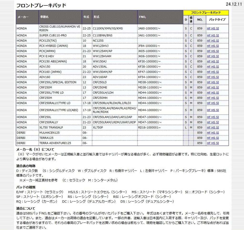 Тормозная колодка KITACO SBS 859HF Ceramic CRF250L CRF250M Derbi Scorpa PCX PCX PCX160 EHEV и т. д.. 777-0859000