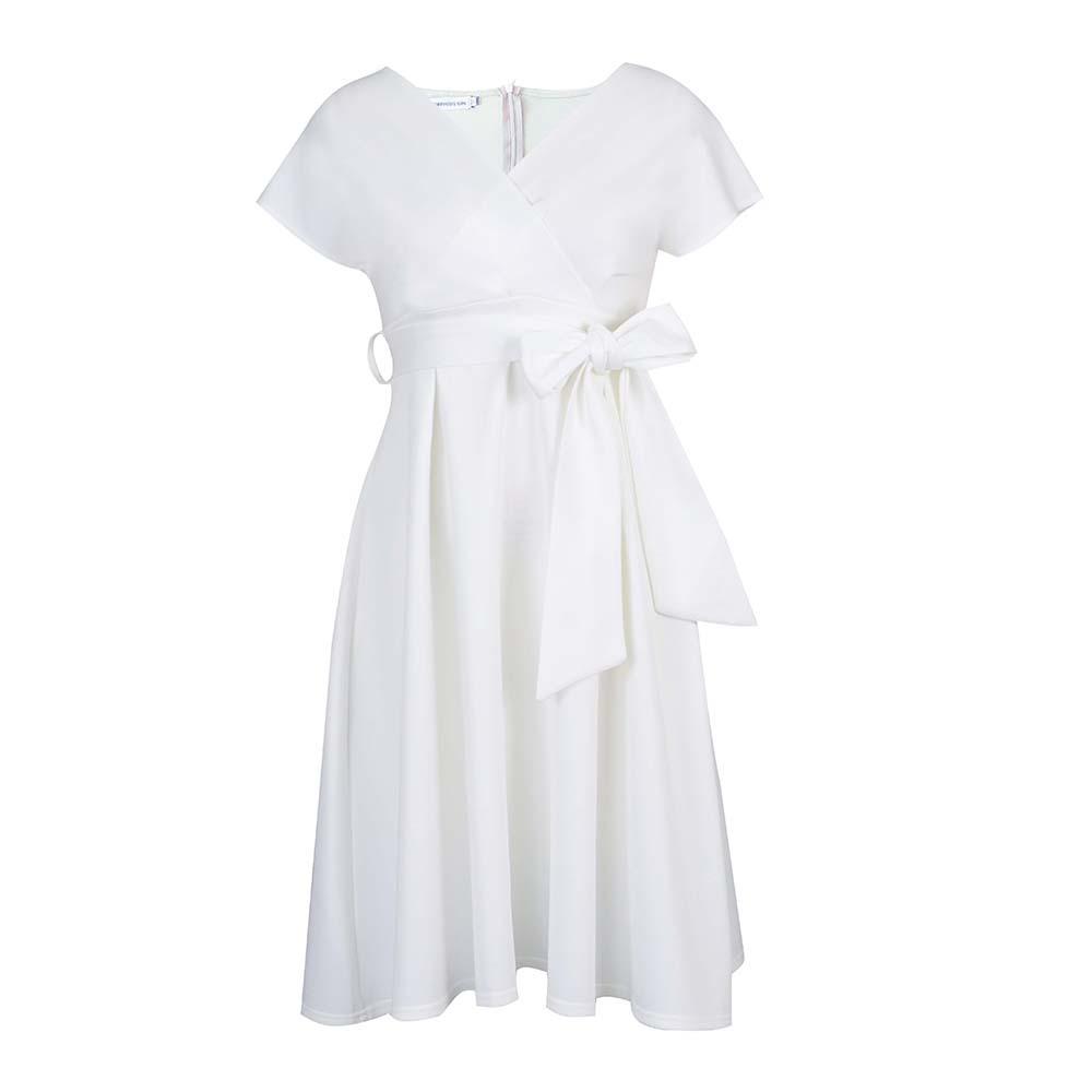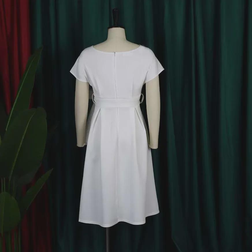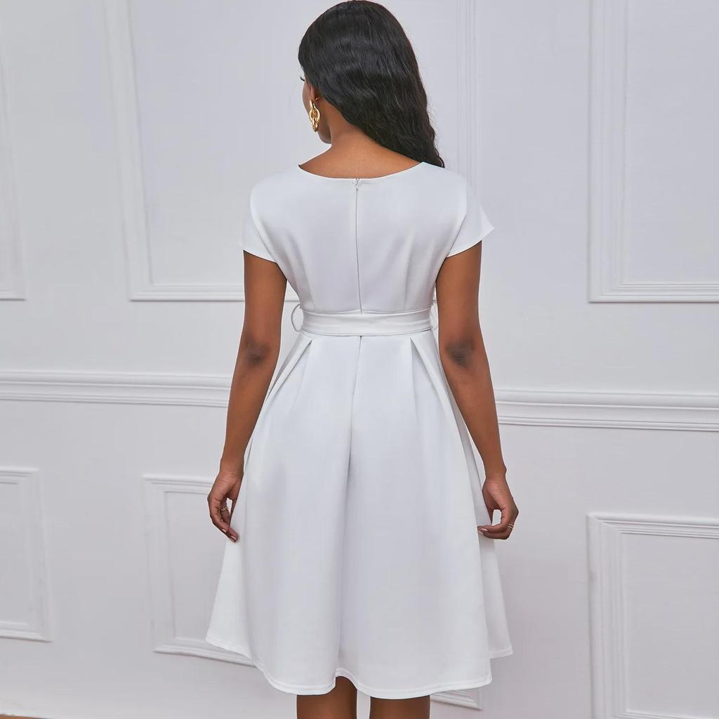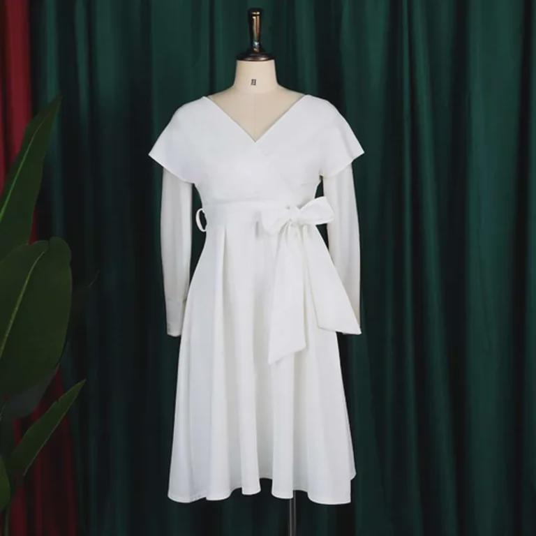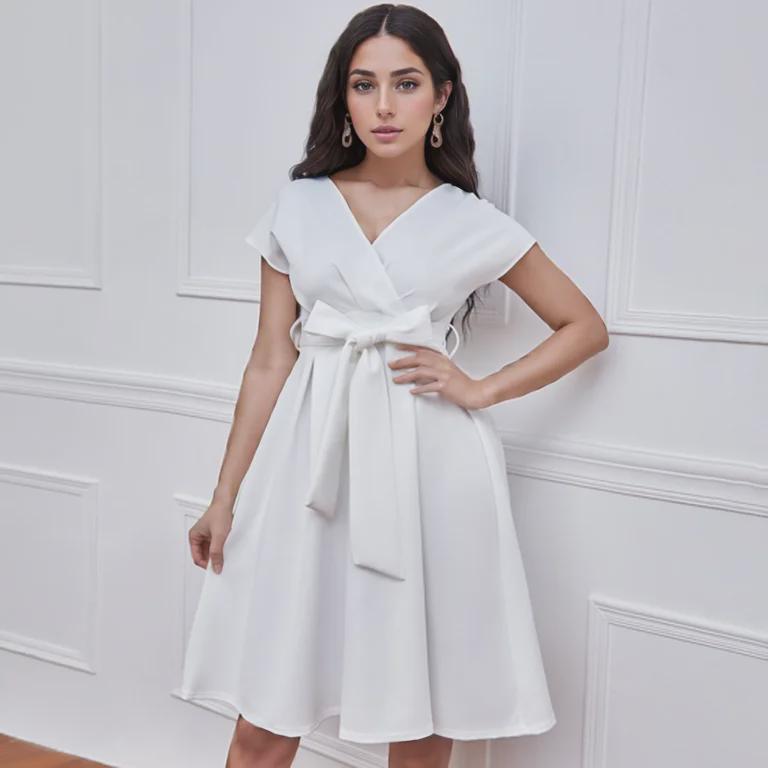 Ощутите непринужденную элегантность в этом шикарном свободном платье, идеально подходящем для случаев в теплую погоду.. Это платье, изготовленное из легкого полиэстера, обеспечивает комфорт и воздухопроницаемость, что делает его идеальным для европейских и американских ценителей моды.. Модель отличается привлекательным V-образным вырезом и стильным поясом-бабочкой, что добавляет женственности однотонной цветовой палитре.. Независимо от того, собираетесь ли вы на вечеринку в саду или наслаждаетесь отдыхом на природе, это платье обеспечит изящный силуэт, который одновременно моден и универсален.