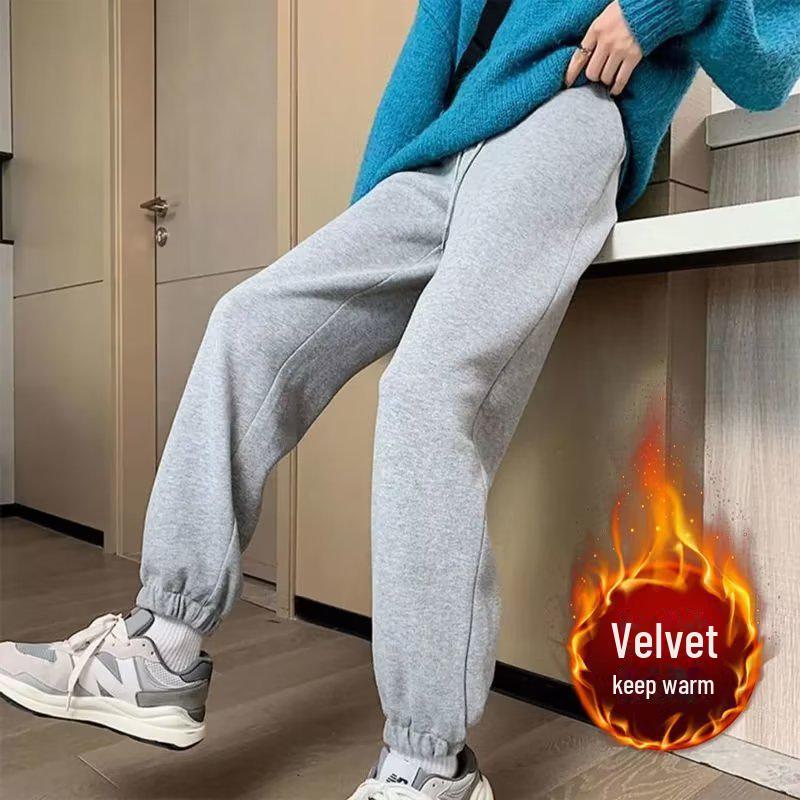 Женские плюшевые спортивные штаны с высокой талией — коллекция осень/зима 2023 г.: Плотная, облегающая, универсальная повседневная одежда.