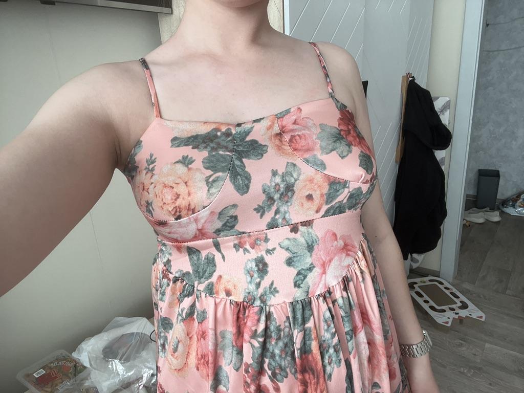 Сарафан очень понравился, немного в пройме узковат, надо было всё же М заказывать, но и так хорошо.Лёгкий, дышащий. Хлопок 💯%. Запаха нет, швы обработаны хорошо. Нравится, что карманы сбоку. Заказывала два товара, вложили в одну посылку. Спасибо Джум и продавцу.