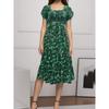 GMXIA Платье с квадратным воротником, рукавами-фонариками и цветочным принтом, длинная юбка