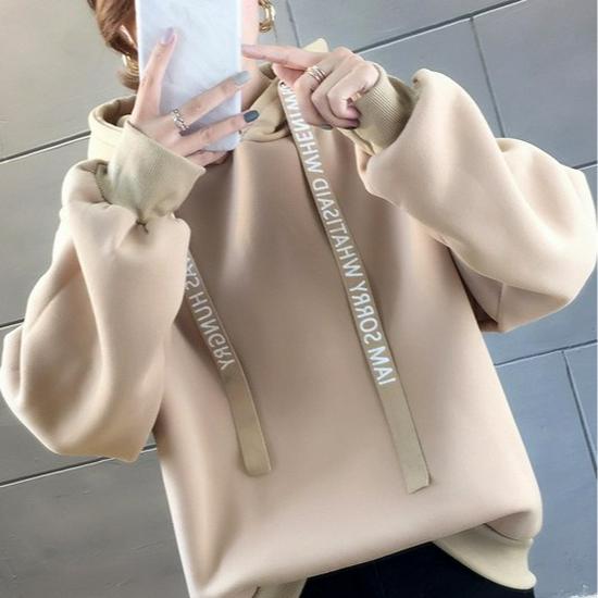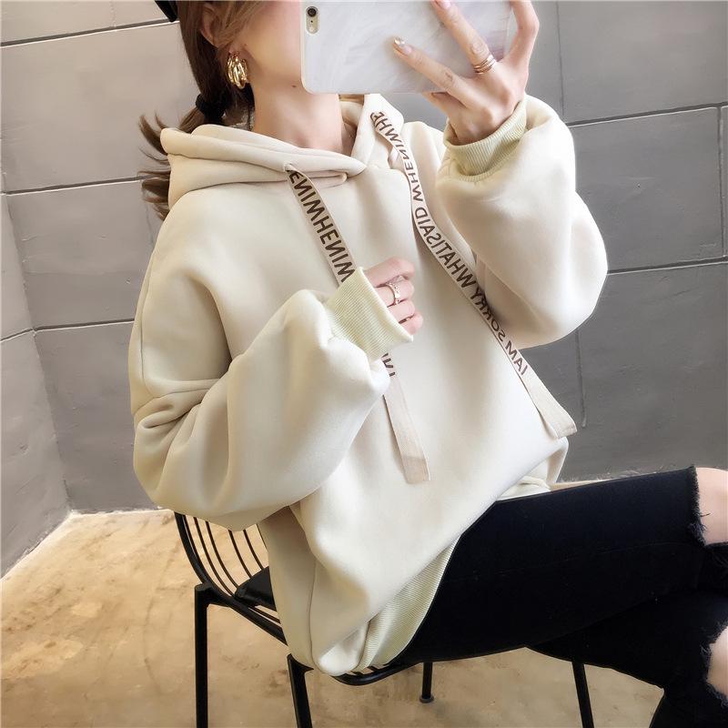 Женская антипиллинговая толстовка в корейском стиле 2025 года — удобная, свободная, плюс бархат, осенне-зимний студенческий стиль