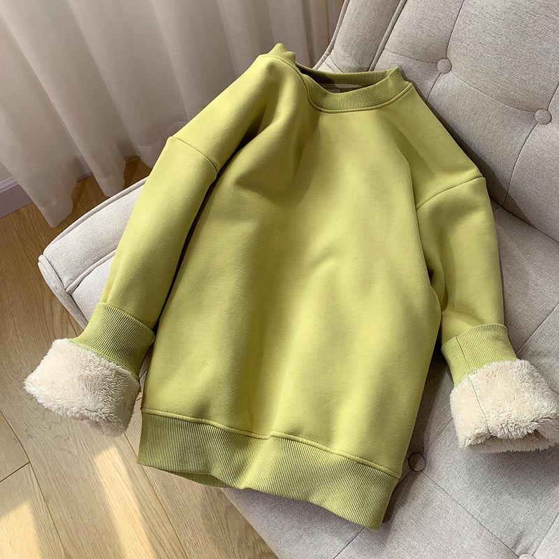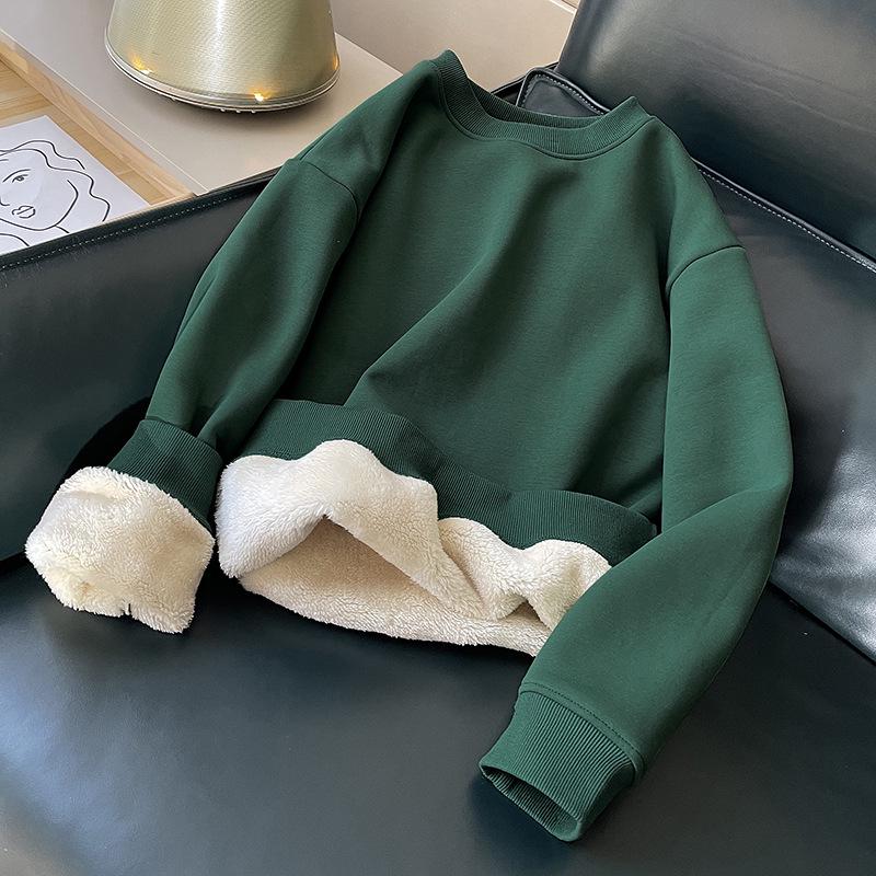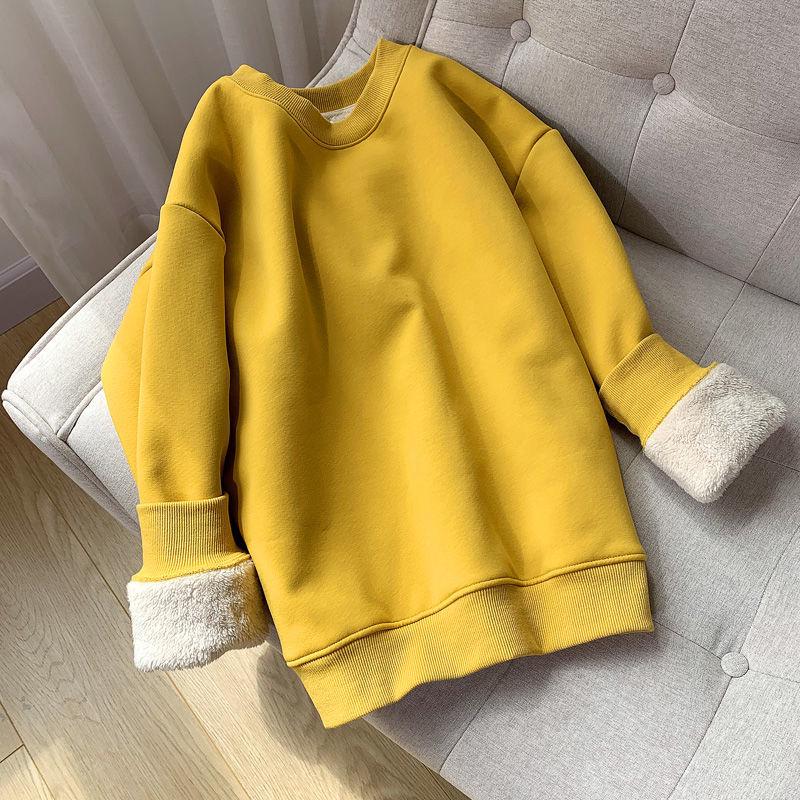 Свитшот унисекс из овчины и флиса - теплый, свободный топ с круглым вырезом для осени/зимы