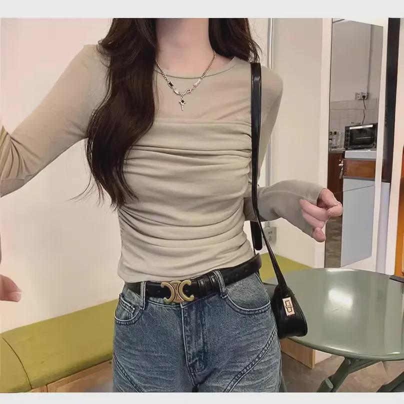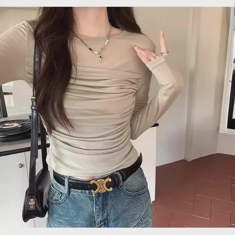 Женская сетчатая плиссированная рубашка приталенного кроя с длинным рукавом — весенне-летний дизайн.