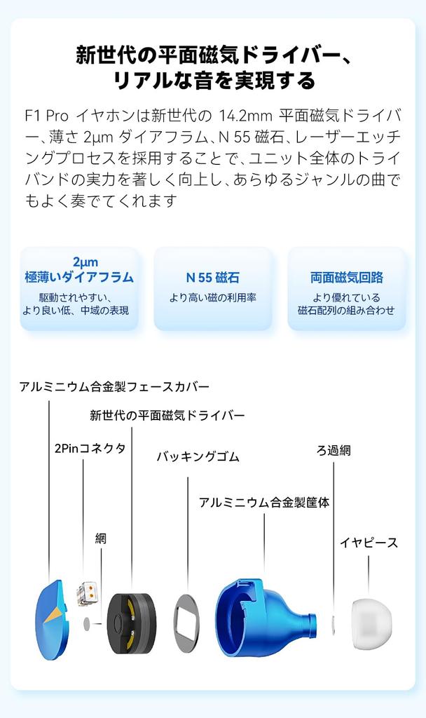 [14,2-миллиметровый планарный магнитный драйвер] В наушниках F1 Pro используется новое поколение 14,2-миллиметрового планарного магнитного драйвера, тонкая диафрагма 2 мкм, магнит N55, процесс лазерного травления и двойная магнитная цепь, что значительно улучшает трехдиапазонные возможности всего устройства, позволяя ему хорошо воспроизводить песни всех жанров.