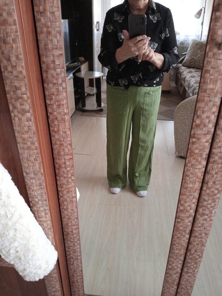 Все понравилось после перешивания.Седло пришлось на штанах перешивать и длинну порезать,на 4 смубрать ширину холошины,так как при ходьбе я все время наступала на них,пока не упала .Теперь все хорошо,но 700 руб. Пришлось за перешивку отдать,за это тризвезды.