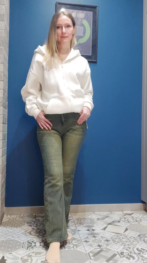 Суперские джинсы 👖 🔹️тёплые зимние штанишки. Внутри полностью утеплены "меховушкой" - материал похож на искусственный мех с короткой ворсой; 🔹️модель расклешенная. Что, кстати, очень даже удачно - до колена штанина облегает ногу и таким образом не впускает холод. И только в нижней части клёш, который снова и снова циклично возвращается в моду; 🔹️цвет - на пике популярности. Это сине-коричневый с потертостями; 🔹️пошив безупречный 👌🏻. ✅ Цвет, модель и качество просто отменные 🔥🔥🔥. 🔹️имеются шлёвки для ремня, стандартные карманы, металлическая фурнитура (пуговица и молния), фабричные этикетки. ❗Но единственным и весомым минусом для меня является несоответствие длины 😔☹🥺. Поэтому я в безмерной печали. Думаю, идеальны будут для роста 155-158 см. Покупала эти джинсы дочери ростом 168 см и они ей катастрофически коротки. Продавец обещает 101 см. А в реальности всего 94 см. Даже на мой рост 164 см и короткие ноги джинсы не подошли. Очень жаль. Сверяйте мерочки в размере М: - длина по боковому шву - 94 см; - длина по внутреннему шву (шаговая) - 69 см; - объём талии - 70 см; - объём бёдер - 92 см; - объём штанины внизу - 50 см. Отлично тянутся ☝🏻 Рекомендую невысоким девушкам. Джинсы просто замечательные 😍 (были бы идеальны для меня, если бы длинее).