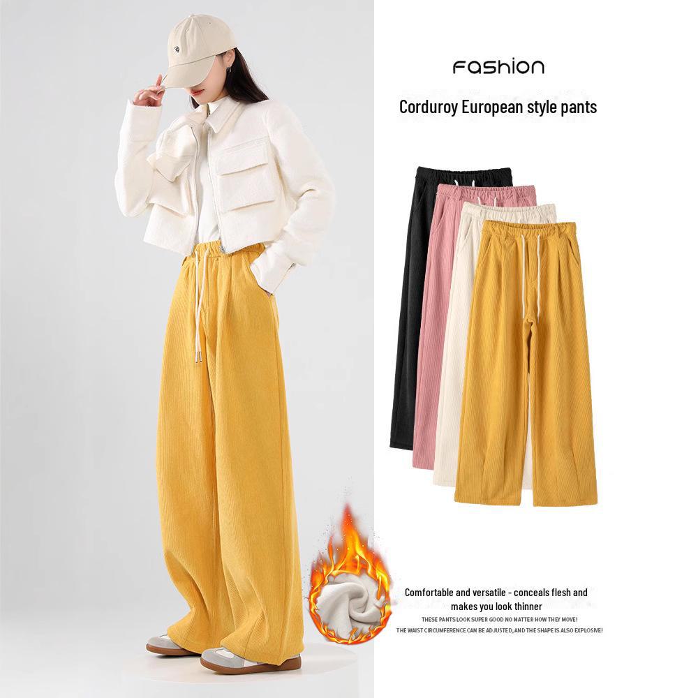 Женские желтые вельветовые брюки широкого кроя - осень/зима 2025 года, бархат, свободный прямой повседневный стиль