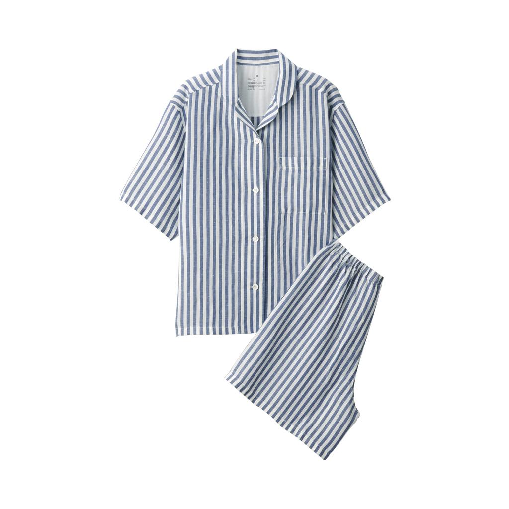 Пижама с короткими рукавами из льна MUJI Naturally Derived Cool Touch Lyocell FDB06A3S Navy Stripe L для женщин — купить товар онлайн с бесплатной доставкой до всему миру!