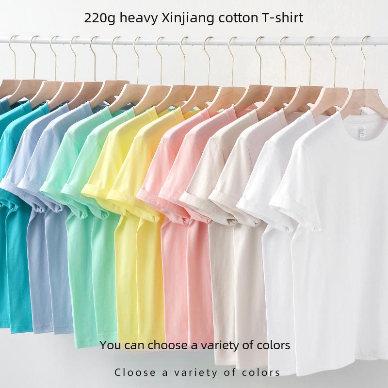 2025 Женская однотонная футболка с круглым вырезом и коротким рукавом - Простая, плотная модель Blank Top