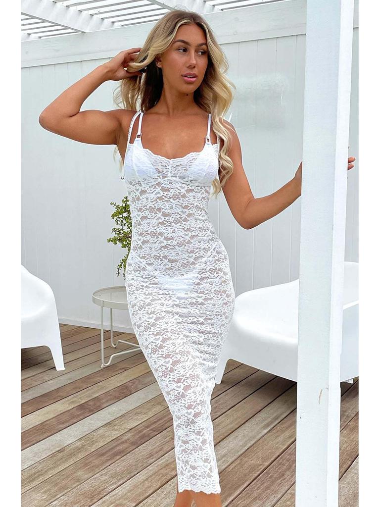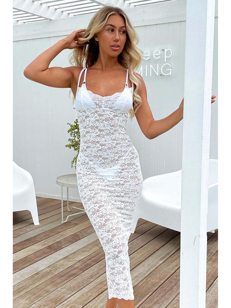 Новое многоцветное кружевное безрукавное сексуальное длинное платье на подтяжках 2025 г.