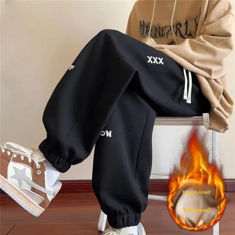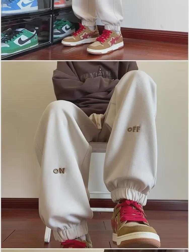 Мужские велюровые спортивные штаны свободного кроя в гонконгском стиле - Осенне-зимний тренд с вышитыми манжетами