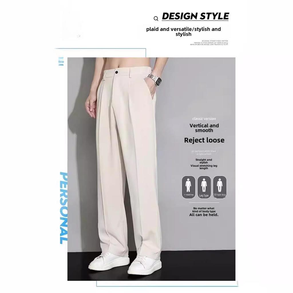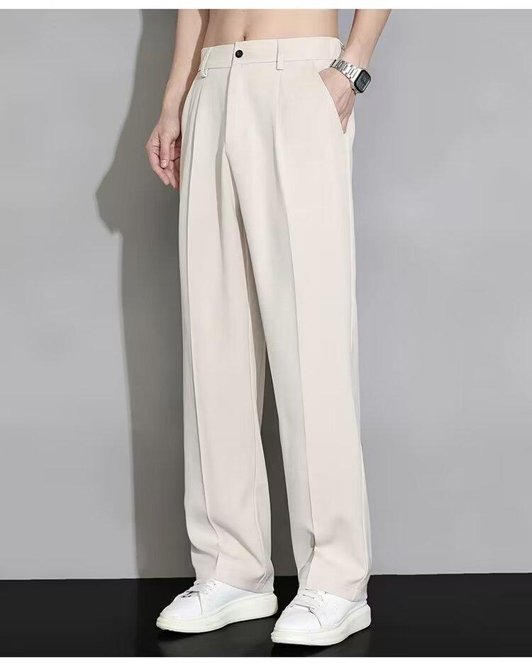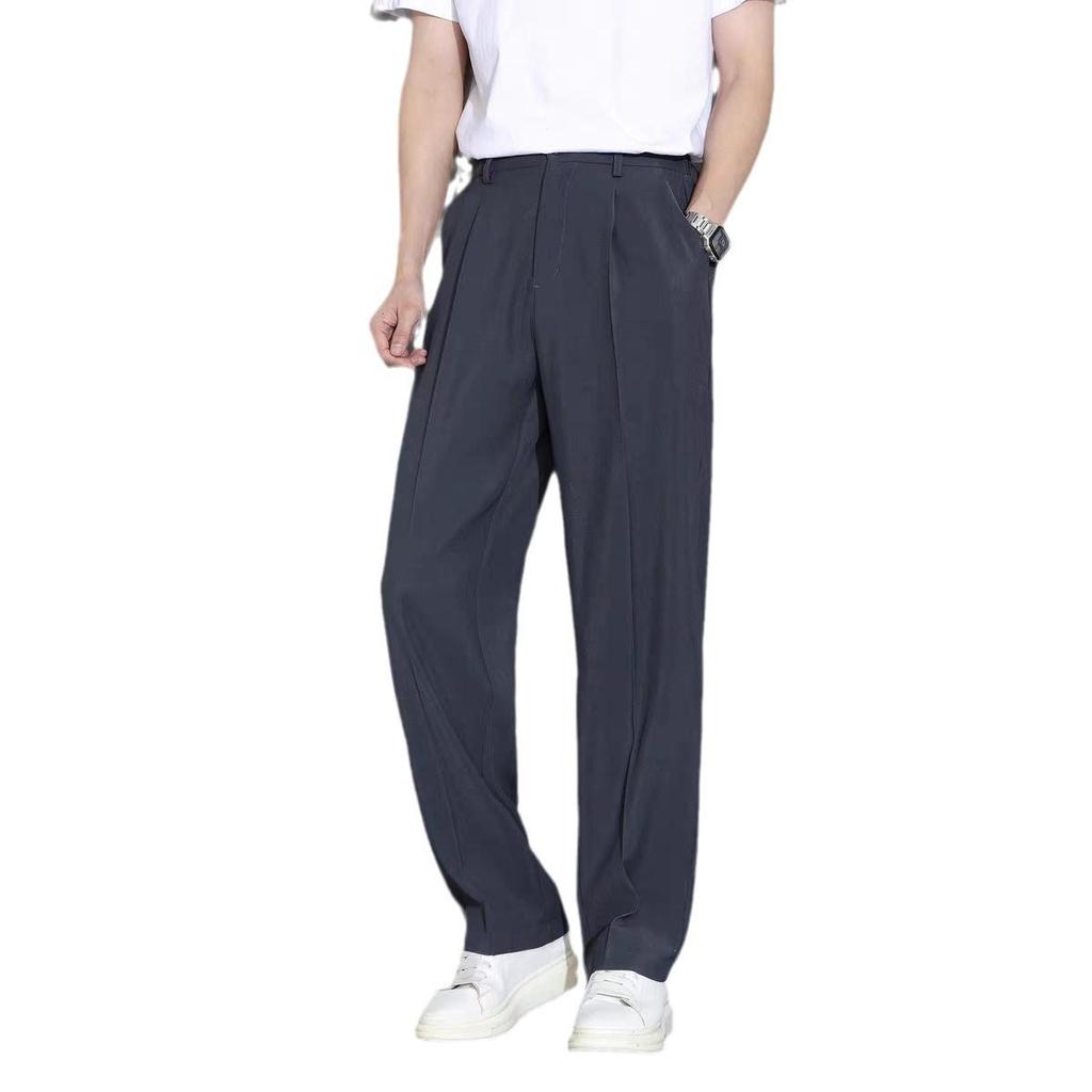 Мужские повседневные летние брюки из ледяного шелка — свободные, прямые и высококачественные брюки с драпировкой