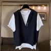 Мужская летняя футболка в корейском стиле с капюшоном из двух частей - с короткими рукавами, свободная, повседневная