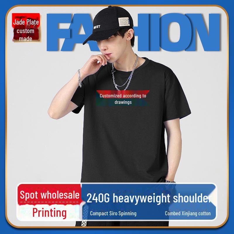 Футболка из плотного однотонного хлопка плотностью 240 г с круглым вырезом и фирменным логотипом