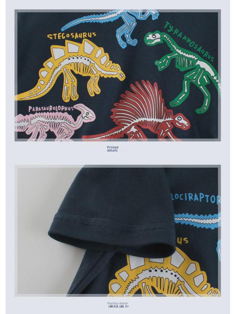 Подготовьте своего малыша к лету с помощью этой игривой футболки для мальчиков с изображением динозавра из мультфильма. Этот топ с короткими рукавами изготовлен из мягкого высококачественного хлопка, обеспечивающего комфорт и воздухопроницаемость для повседневных приключений.. Благодаря забавному и красочному дизайну в виде динозавра, он идеально подойдет для того, чтобы добавить нотку азарта в любой гардероб.. Эта рубашка идеально подходит для повседневных прогулок или игровых встреч, сочетая в себе стиль и комфорт.
