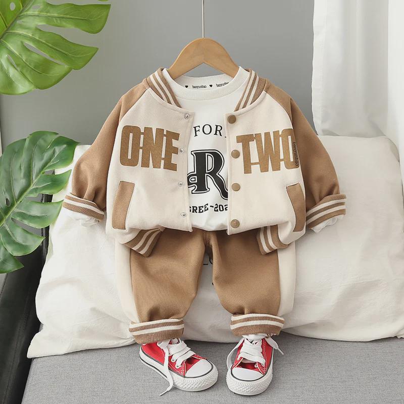 Этот повседневный костюм-тройка для мальчиков на осень 2023 года идеально подойдет для того, чтобы ваш ребенок чувствовал себя комфортно и стильно в прохладную погоду.. Каждая деталь комплекта с длинными рукавами изготовлена из мягкого, дышащего хлопка, обеспечивающего комфорт в течение всего дня.. Этот универсальный костюм идеально подходит для повседневной носки и сочетает в себе функциональность и моду для осеннего гардероба вашего ребенка.