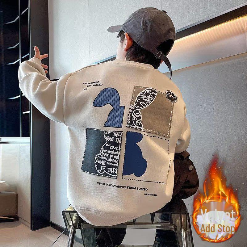 Свитшот с кроликом в корейском стиле для мальчиков 2024 года — на бархатной подкладке, с длинным рукавом, для осени/зимы