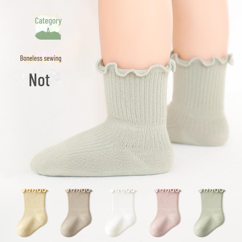 Осенние детские носки свободного кроя с деревянными ушками и средней длиной - однотонные, не сдавливающие короткие носки для новорожденных — купить товар онлайн с бесплатной доставкой до всему миру!